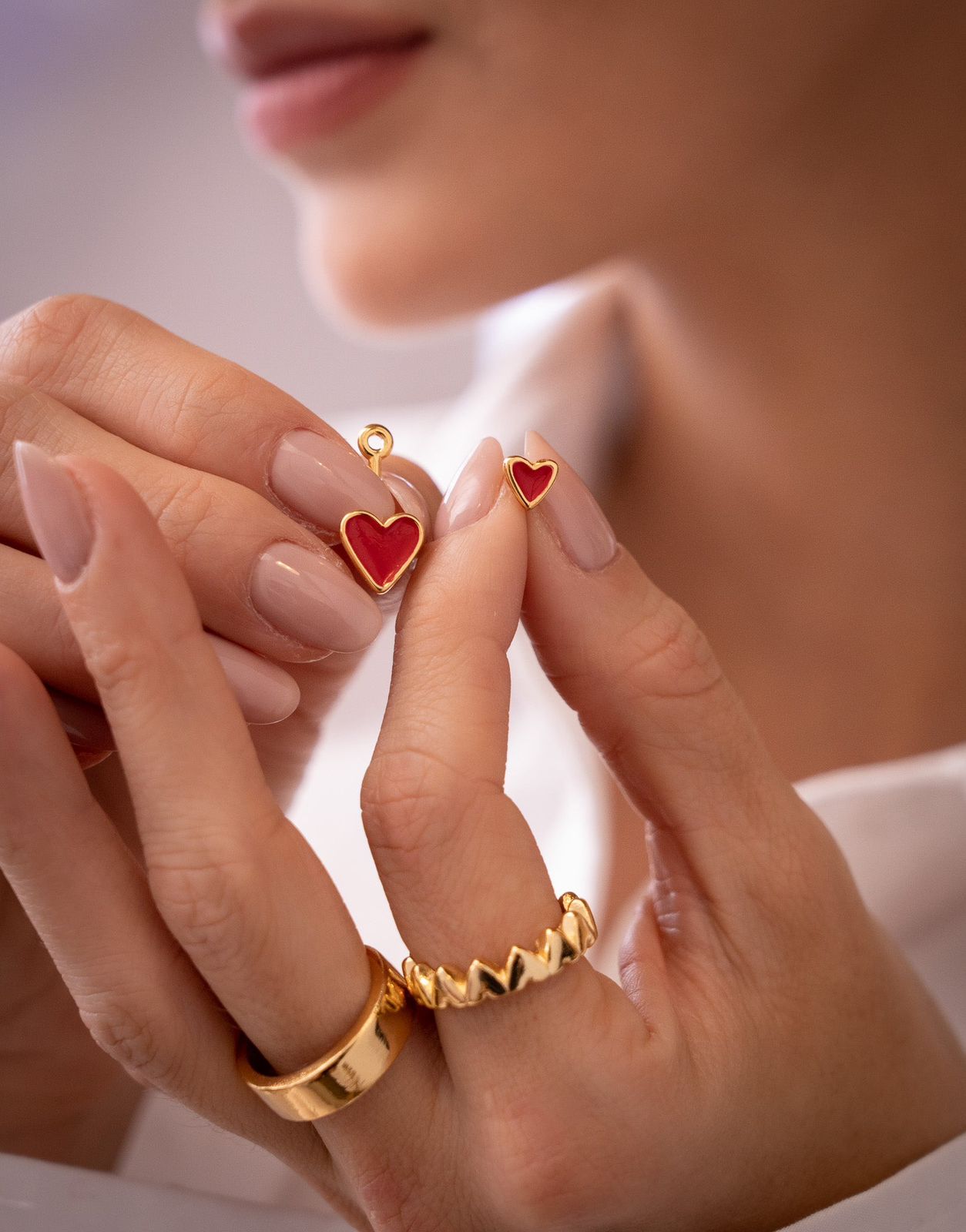 Aretes 2 en 1 Corazones Rojo