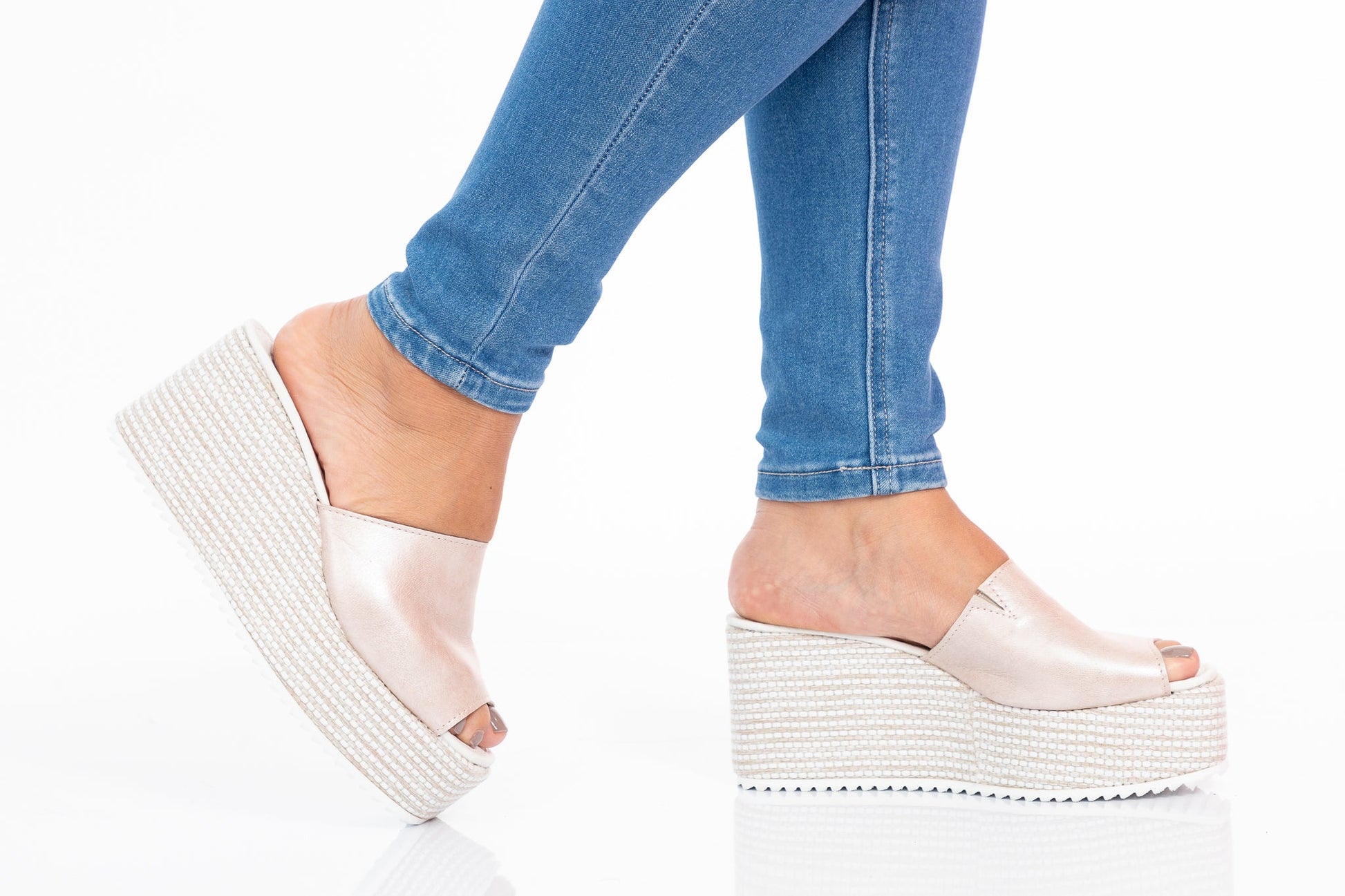 Plantilla gel flor piel pespuntes, plataforma forrado textil bicolor. Diseñadas para ser confortables y resistentes.