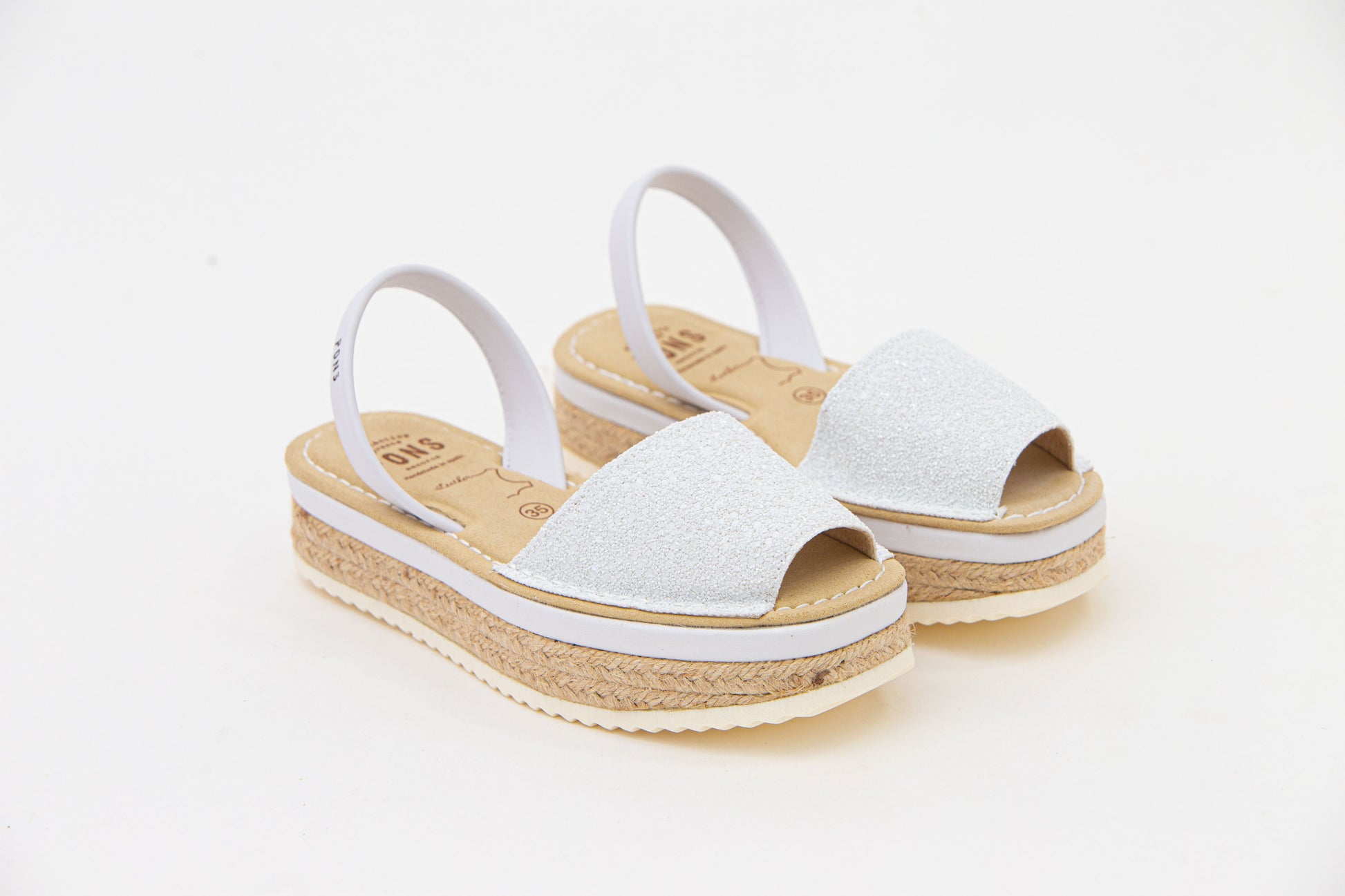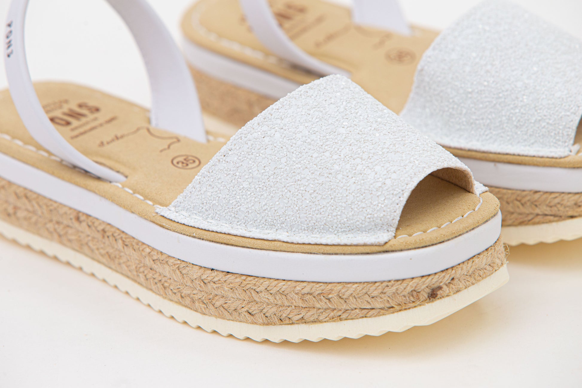 El estilo glitter es 70% poliuretano, 30% algodón y su tira trasera 100% Piel flor vacuno (Este tipo de piel es el de mayor calidad entre todos los tipos posibles, es el más resistente y duradero.) Las posibles venas en la piel son garantía de su autenticidad, así como las ligeras diferencias de tono entre las diferentes producciones. Su plantilla es de gel, su suela es de caucho reciclado, fueron diseñadas para ser confortables y resistentes.