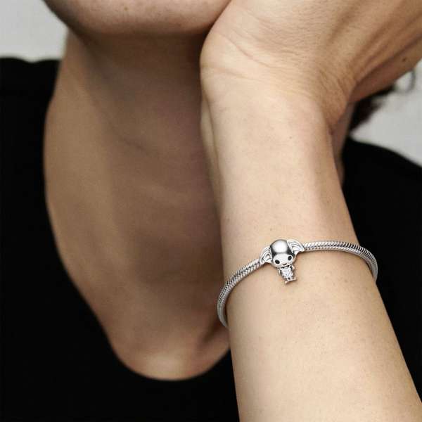 Amado por su infinita devoción a Harry, Dobby el elfo doméstico es fácil de amar, incluso cuando sus mejores intenciones salen mal. Su lealtad y entusiasmo por ayudar a Harry están simbolizados en el amuleto de Harry Potter, Dobby el elfo doméstico al sostener el calcetín de Harry como recuerdo de su libertad y sus grandes ojos ansiosos por complacer en esmalte negro.
