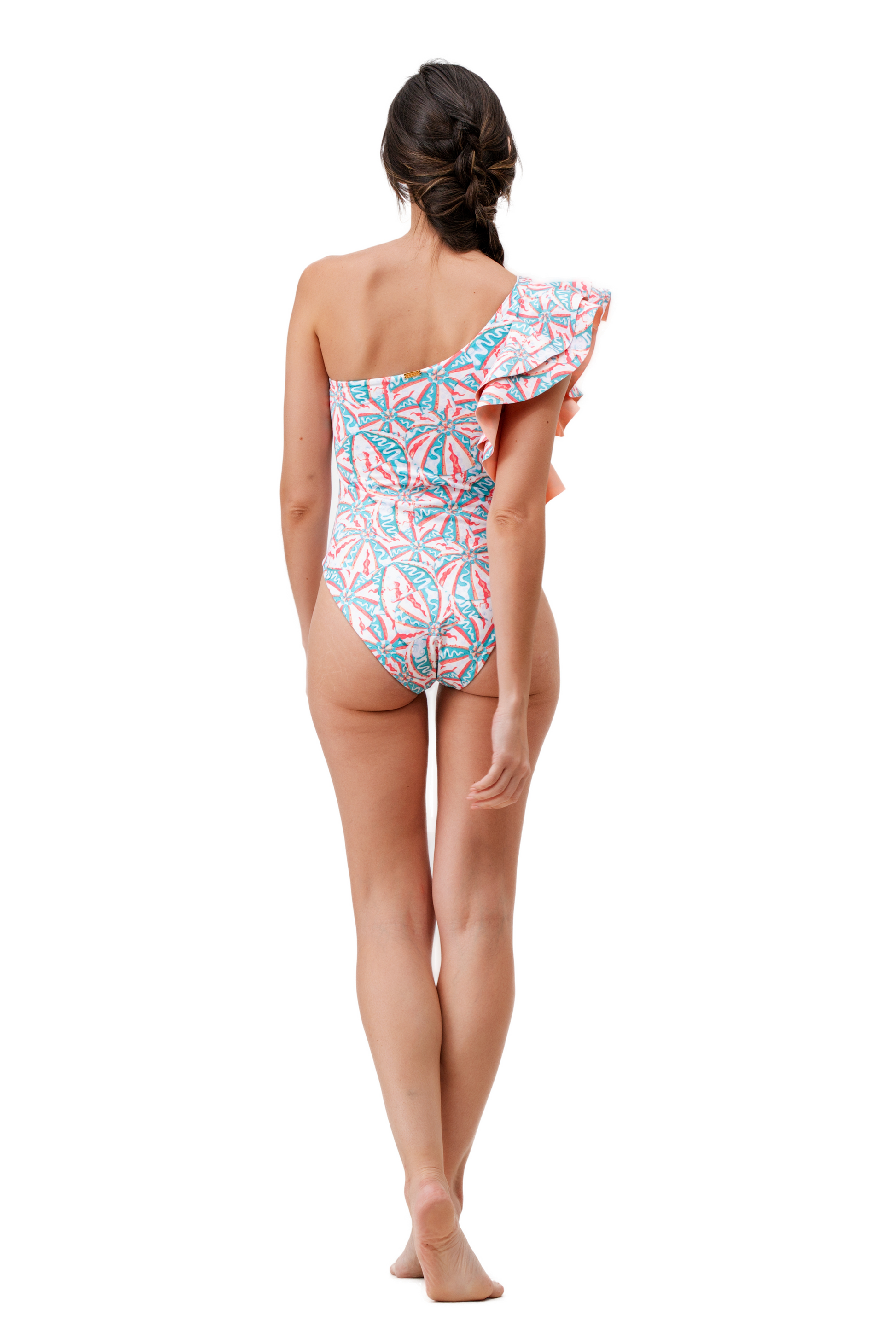 Enterizo de una manga con bolero laminado, copas extraíbles. Composición 80% poliéster 20% elastano.