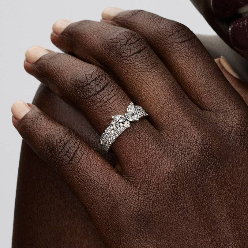 Atrévete con nuestro anillo de mariposa macizo. Con medio pavé de