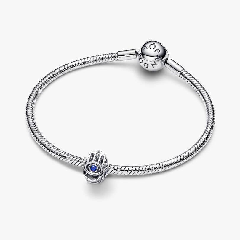 Conéctate con la protección y la positividad con nuestro dije de mano de Fátima en plata de ley. Con un diseño calado y cristales artificiales azules, deja que sea tu guía hacia la fuerza y la serenidad.
