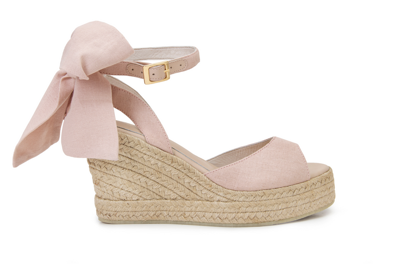 Cuña de cuero con textil color rosado.