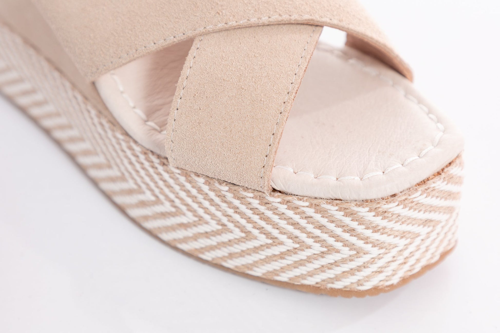 Su plantilla es de gel, su piso plataforma forrado piel + trenza bicolor.