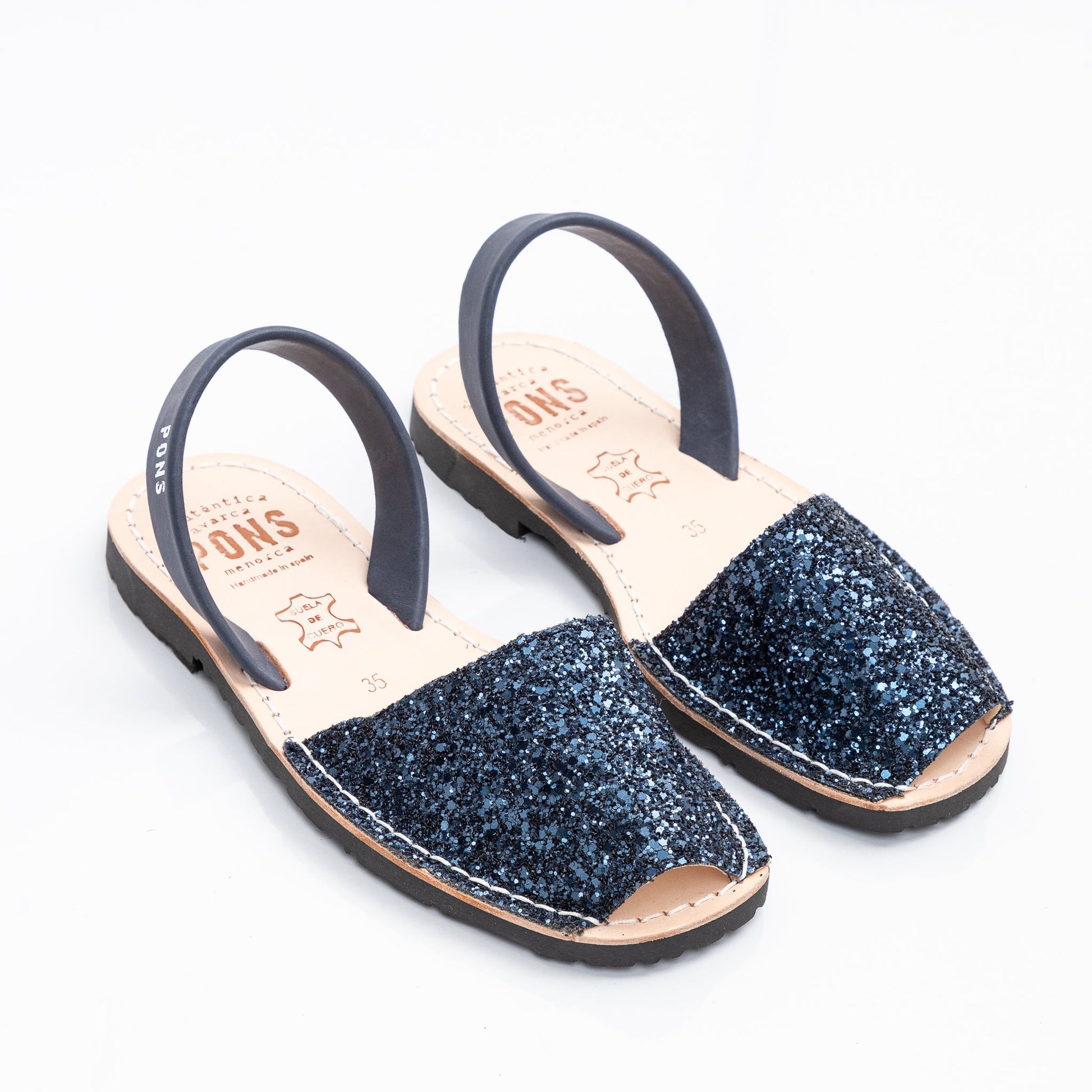 El estilo glitter es 70% poliuretano, 30% algodón y su tira trasera 100% Piel flor vacuno (Este tipo de piel es el de mayor calidad entre todos los tipos posibles, es el más resistente y duradero.) Las posibles venas en la piel son garantía de su autenticidad, así como las ligeras diferencias de tono entre las diferentes producciones. Su suela es de caucho reciclado, fueron diseñadas para ser confortables y resistentes.