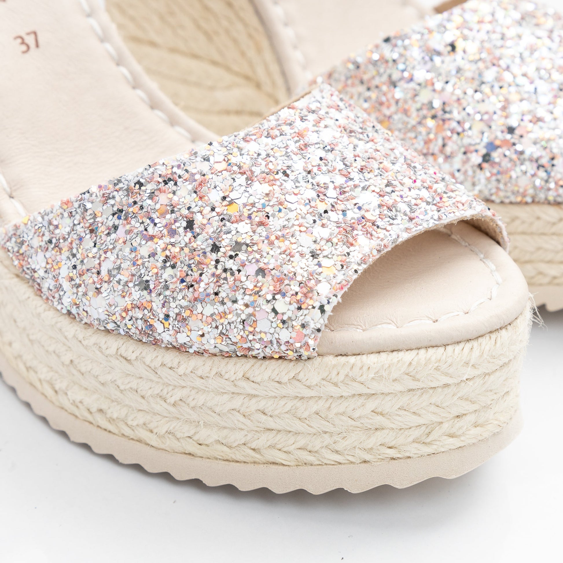 Estilo 70% Poliuretano, 30% algodón, la tira trasera es 100% Piel flor vacuno (Este tipo de piel es el de mayor calidad entre todos los tipos posibles, es el más resistente y duradero.) Las posibles venas en la piel son garantía de su autenticidad, así como las ligeras diferencias de tono entre las diferentes producciones. Su plantilla es de gel, plataforma de yute y su suela micro, fueron diseñadas para ser confortables y resistentes.