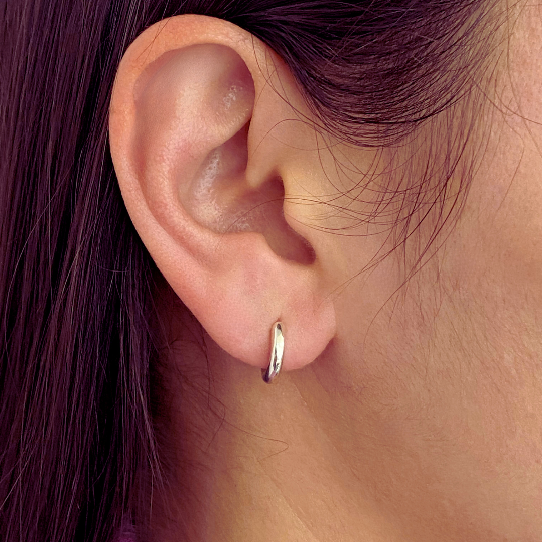 Estos aros, fabricados en plata de ley, presentan un perfil redondeado y una forma cóncava en el interior de los aros. Inspirados en las formas orgánicas y hermosas de la naturaleza, estos aros curvos y esculturales aportan una nueva versión del minimalismo moderno.