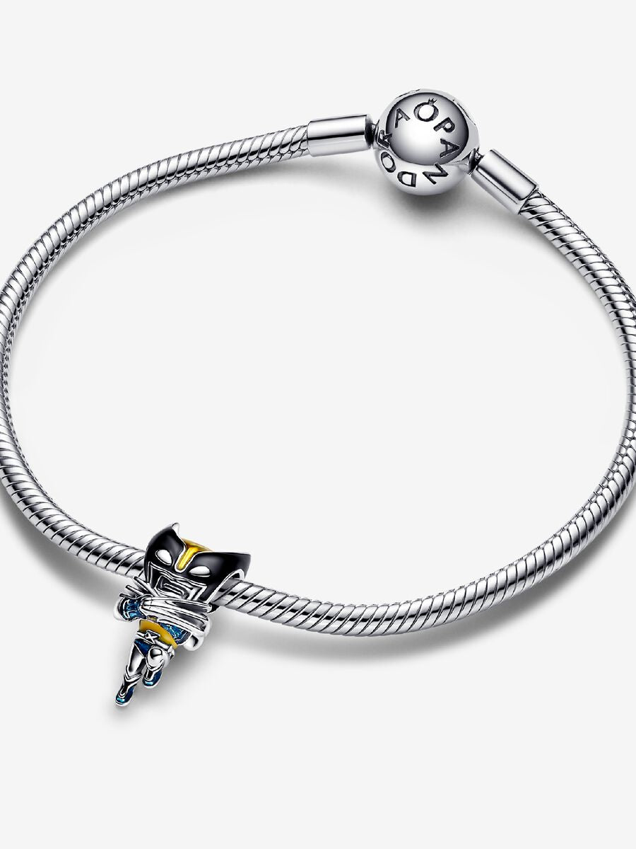 Está representado en plata de ley con toques de esmalte con efecto metálico. Colores contrastantes y un intrincado relieve el esmalte da vida a este dije, mostrando a Wolverine en plena acción con sus brazos y sus emblemáticas garras largas cruzadas sobre el pecho.